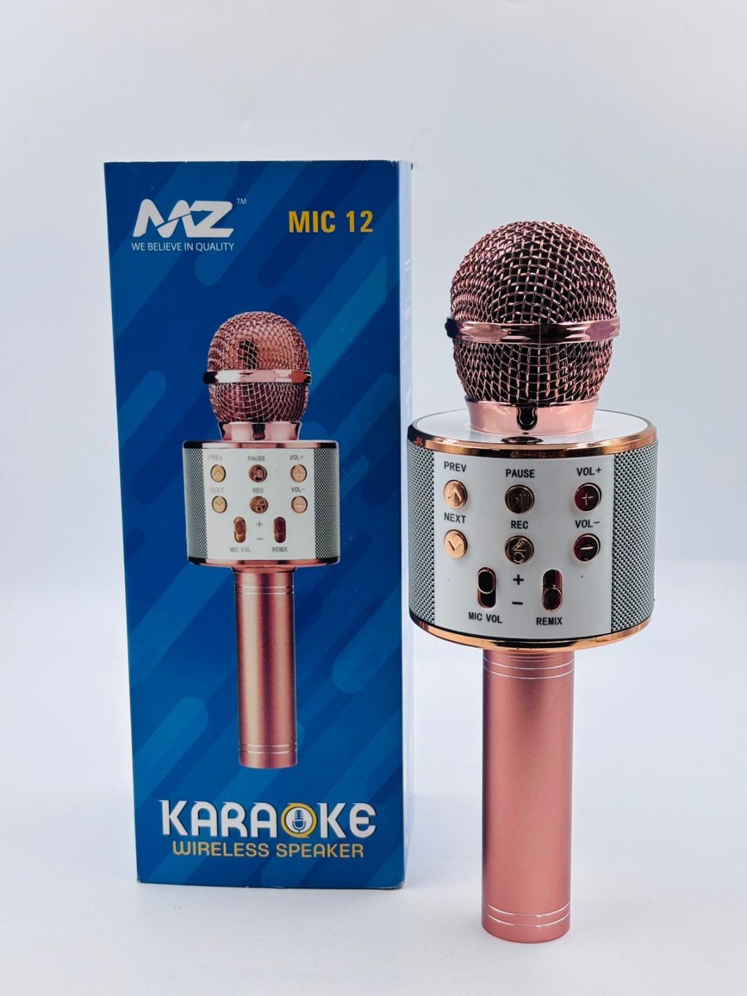 Bluetooth Mike Speaker: The microphone is a Standard size and fits in hand well. The sound is clean, you can use it for pretty much for singing, talking and even play music through it.