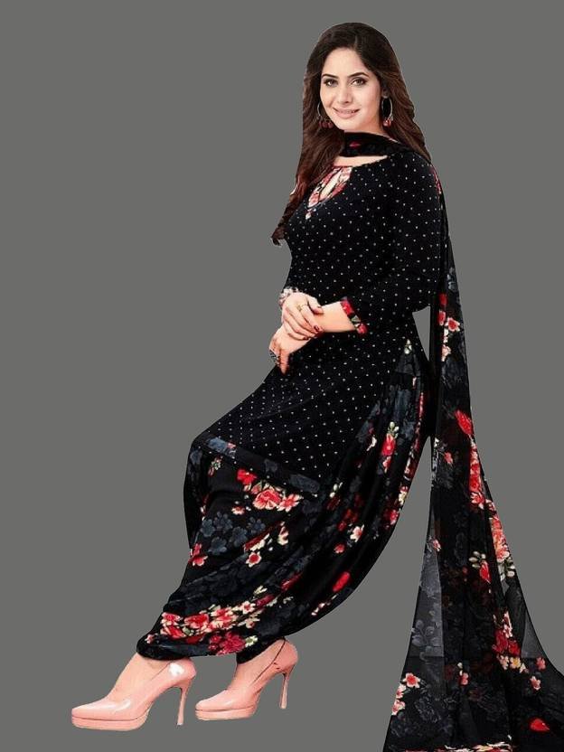 This versatile black floral salwar suit material is a must-have for your collection, offering style, comfort, and customization in one set.